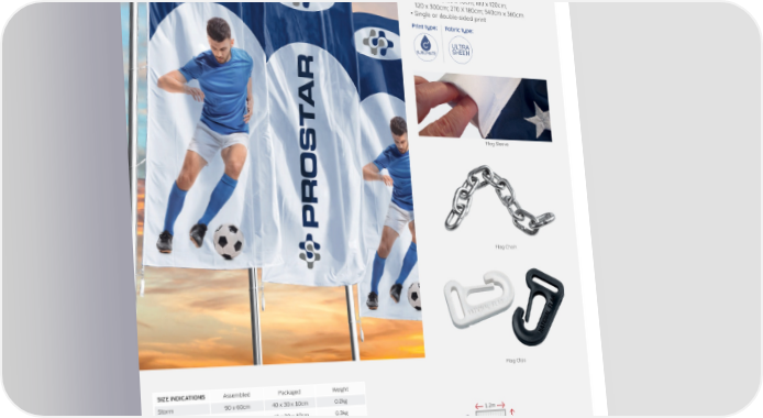 Corporate Flags Features: • Corporate 昀氀ags can be digitally printed onto Ultrasheen • Rope and toggle included • Flagpole not included • Custom sizes available • Various 昀椀nishing options available • Standard sizes available: 90 X 60cm; 135 x 90cm; 180 x 120cm; 120 x 300cm; 270 X 180cm; 540cm x 360cm • Single or double-sided print Print type: Fabric type: ULTRA SUBLIMATE SHEEN Flag Sleeve Flag Chain Flag Clips SIZE INDICATIONS Assembled Packaged Weight Storm 90 x 60cm 40 x 30 x 10cm 0.2kg Universal 135 x 90cm 40 x 30 x 10cm 0.3kg 1.2m Standard 180 x 120cm 40 x 30 x 10cm 0.6kg Ceremonial 270 x 180cm 40 x 30 x 10cm 1kg Corporate 120 x 300cm 40 x 30 x 10cm 3kg 1.8m Grand Ceremonial 540 x 360cm 40 x 30 x 10cm 2kg Custom Variable Variable Variable HOW TO STEP 1 STEP 2 STEP 3 STEP 4 STEP 5 ORDER Select 昀氀ag size: Select fabric type: Select print type: Select 昀椀nishing options: Select optional extras: • See size indications • Ultrasheen • Digital Print • Sleeves • See choices above • Chains • Clips 9